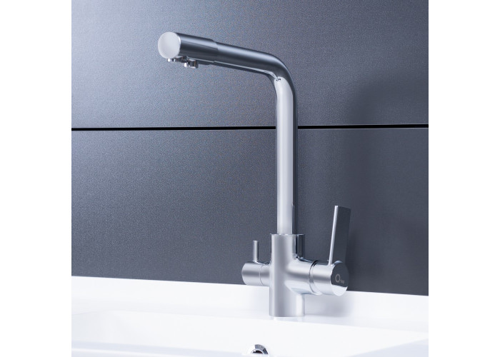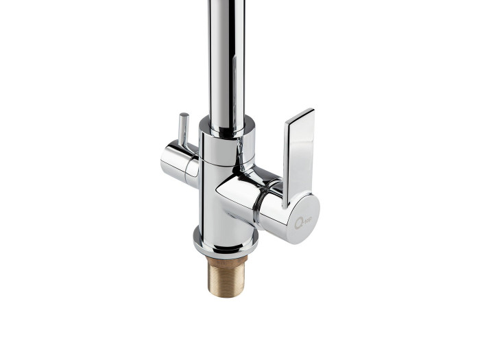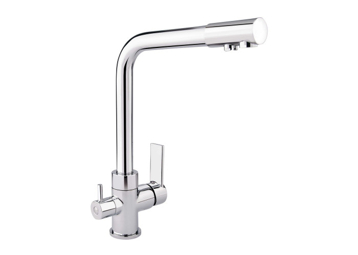 Смеситель для кухни с подключением к фильтру Qtap Form CRM 007F-2 изготовлен из высококачественной пищевой латуни, которая не подвержена коррозии, устойчива к ударам и появлению трещин. Глянцевое хромированное покрытие не только повышает долговечность смесителя, но и придает ему привлекательности. Смеситель имеет Г-образную форму с 3-мя контурами подключения воды. С участием первого и второго осуществляется подключение холодной и горячей воды, где смешивание происходит с помощью картриджа.