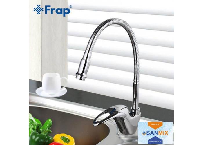 Гибкий излив у смесителя для кухни Frap F4303-1 снимает с него все ограничения. Он поворачивается во все стороны, устанавливается на любой высоте от дна раковины, аэратор направляется под разными углами.