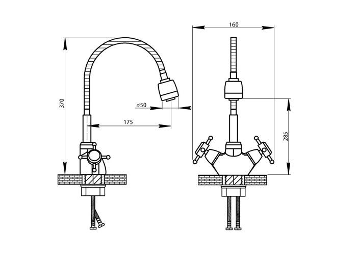 Смеситель, гибкая подводка, крепежи.