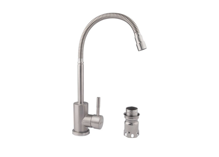 Змішувач рефлекторний для кухні Imperial 31-107-13 виготовлений з нержавіючої сталі. Завдяки нікельованій брашованій поверхні має оригінальний зовнішній вигляд. Виконаний в сучасному стриманому стилі. Рефлекторний вилив є кращим рішенням на кухні: за допомогою нього можна змінювати напрям струменя і режим, а також висоту і кут нахилу. Такий змішувач не тільки зручний та практичний, а й ідеально доповнить інтер‘єр кухні. Після виточування вироби не проходять додаткове шліфування.