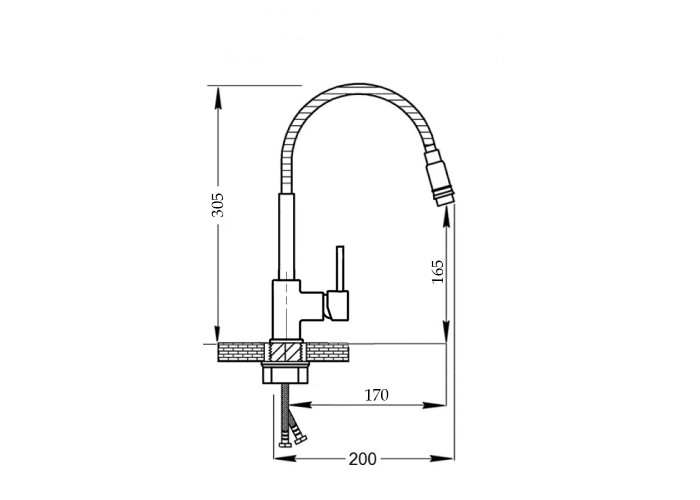 Змішувач, гнучкий підвід, кріпильні деталі.