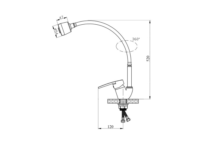 Змішувач для кухні з рефлекторним виливом SW G-Ferro Mars 008F-1