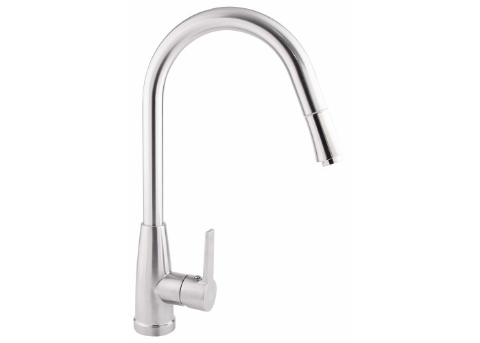 Смеситель выдвижной для кухни GF (NKS)S-11-013F изготовлен из силумина. Благодаря никелированной поверхности имеет оригинальный внешний вид. Отличительной чертой смесителя является выдвижной излив, в котором корпус излива подключается к шлангу 1200мм. Смеситель выполнен в современном стиле и станет настоящей находкой на кухне.