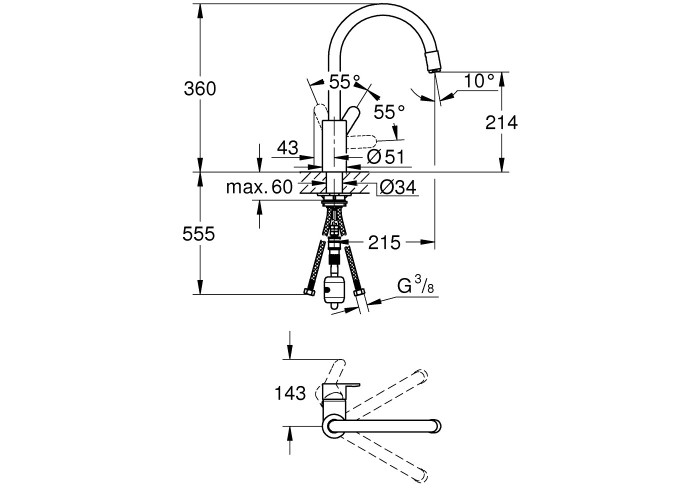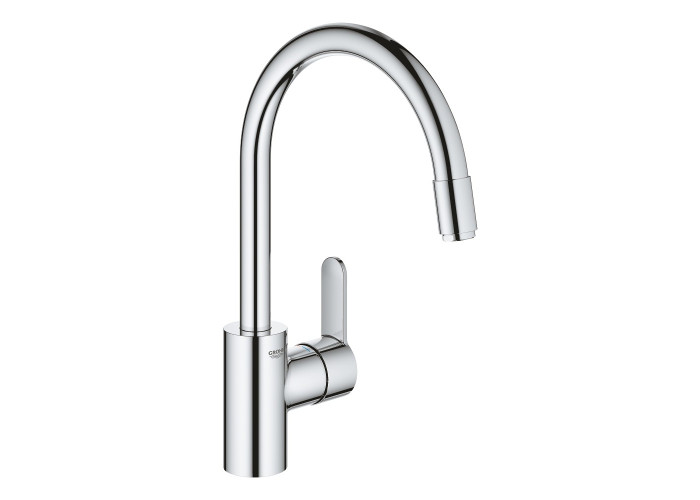 Смеситель для кухни Grohe Eurostyle Cosmopolitan 31126004 изготовлен из латуни, имеет хромированное покрытие. Имеет выдвижной излив с аэратором, который может вращаться в диапазоне 360 градусов, однако вы можете его зафиксировать либо ограничить диапазон вращения 150 градусами. Идеально дополнит интерьер для Вашей кухни.