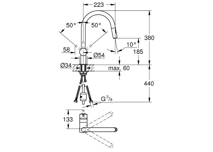 Змішувач висувний для кухні Grohe Minta 30348001 виготовлений з латуні. Має високий висувний поворотний вилив радіусом повороту 360°. За допомогою системи швидкого монтажу, змішувач легко встановити. Виконаний в сучасному стилі та відмінно доповнить інтер‘єр кухні.