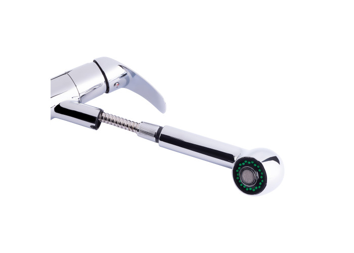 Смеситель для кухни с выдвижным изливом Lidz (CRM) Mars 81 011 изготовлен из прочной латуни. Благодаря хромированной поверхности имеет оригинальный внешний вид. Он выполнен в современном сдержанном стиле. Такой смеситель не только удобен и практичен, но и идеально дополнит интерьер кухни. Функциональность смесителя расширяется за счет выдвижного излива, благодаря которому можно наполнять и мыть высокую посуду.