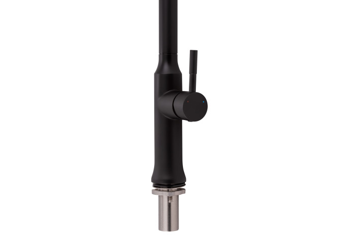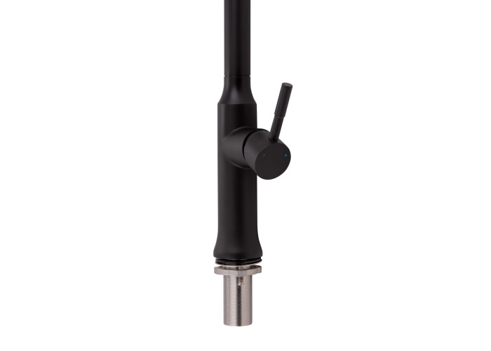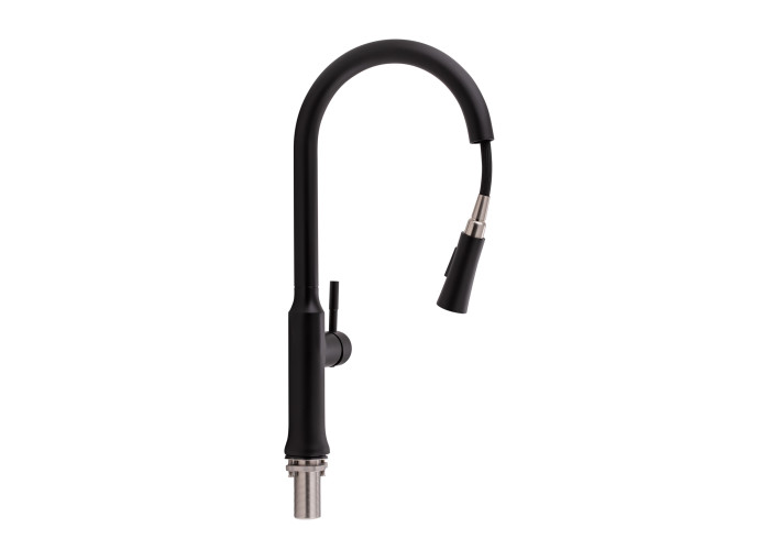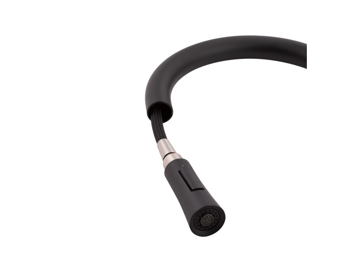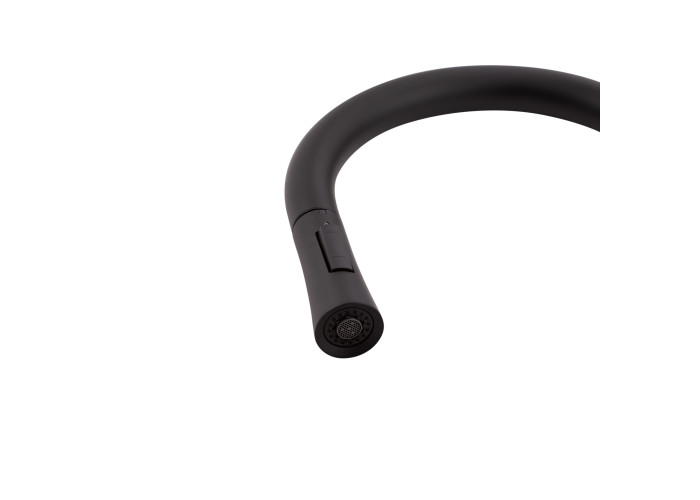 Смеситель для кухни с выдвижным изливом Qtap Evicka 9135103UN изготовлен из высококачественной латуни с матовым черным покрытием, обеспечивающей долговечную бесперебойную работу изделия. Благодаря выдвижной форме излива и двум режимам подачи струи, которые переключаются кнопкой на изливе, можно с легкостью очистить труднодоступные места на посуде. Длина выдвижного шланга 1470 мм. Управление температурой и напором воды осуществляется при помощи удобного рычага.
