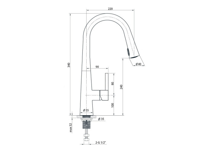 Смеситель, шланг для выдвижной лейки, гибкая подводка, крепежи, якорь.