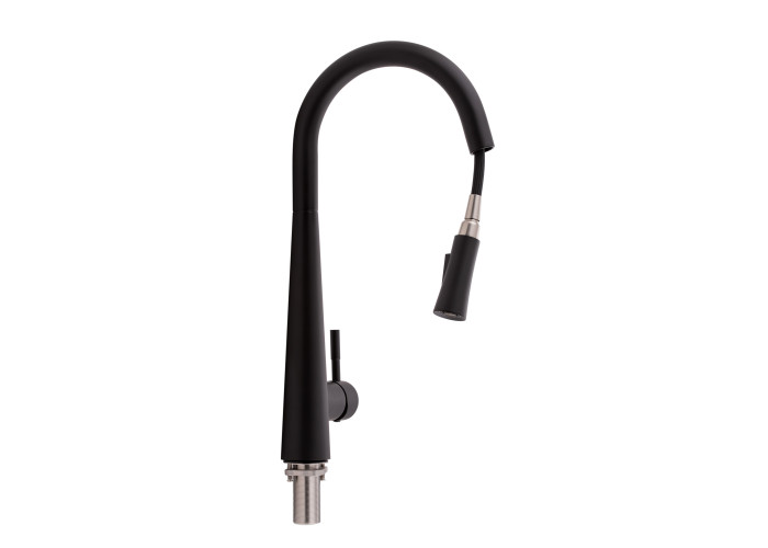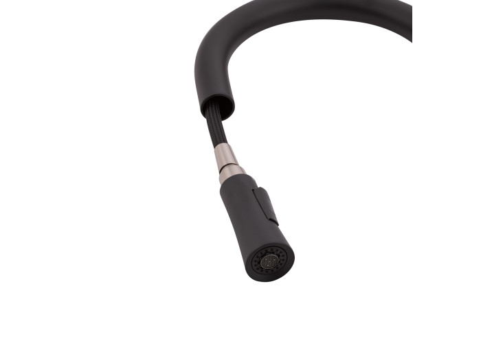 Смеситель для кухни с выдвижным изливом Qtap Evicka 9135103UB изготовлен из высококачественной латуни с матовым черным покрытием, обеспечивающей долговечную бесперебойную работу изделия. Благодаря выдвижной форме излива и двум режимам подачи струи, которые переключаются кнопкой на изливе, можно с легкостью очистить труднодоступные места на посуде. Длина выдвижного шланга 1470 мм. Управление температурой и напором воды осуществляется при помощи удобного рычага.