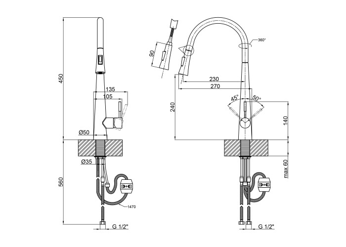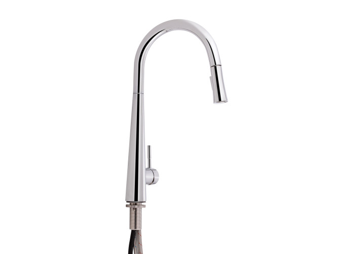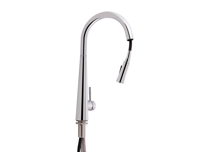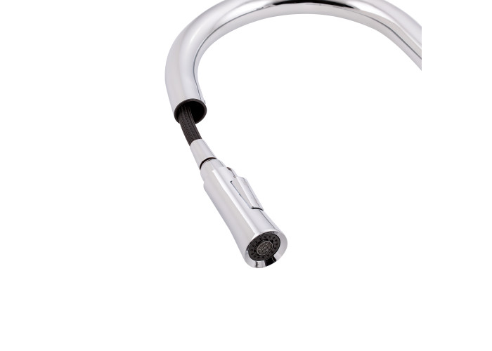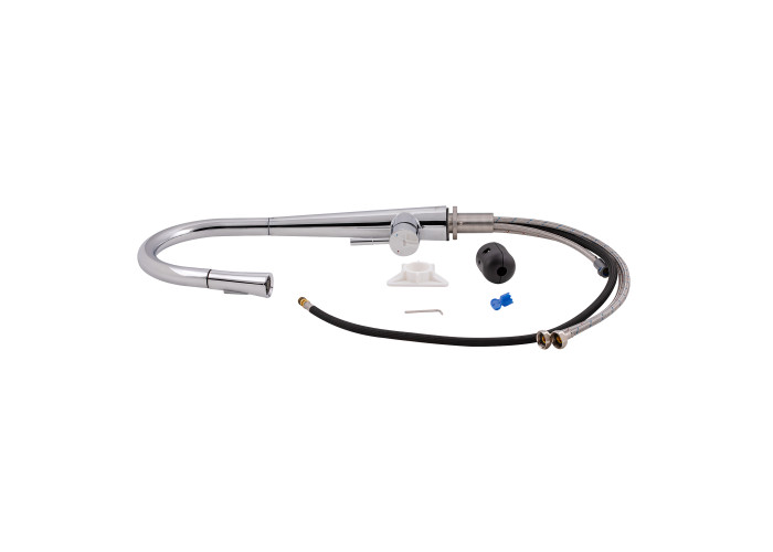 Змішувач, шланг для висувної лійки, гнучкий підвід, ключ для аератора, кріпильні деталі, якір.