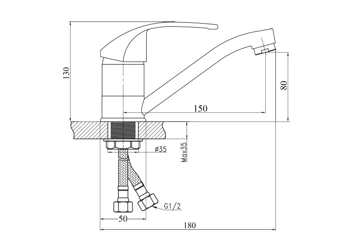 Змішувач, гнучкий підвід, кріпильні деталі.