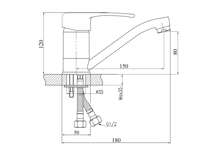 Смеситель, гибкая подводка, крепежи.