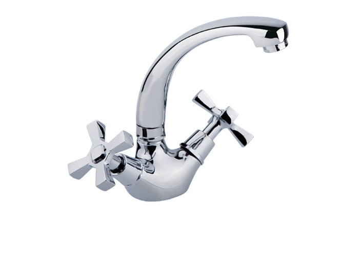 Змішувач для кухні SW Omega 272F виготовлений з силуміну. Завдяки глянсовому хромованому покриттю має оригінальний зовнішній вигляд. Виконаний в класичному стилі, з вентильними ручками для перемикання потоку холодної та гарячої води. Такий змішувач не тільки зручний і практичний, а й ідеально доповнить інтер‘єр кухні.