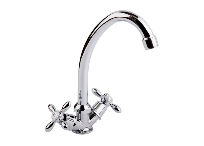 Змішувач для кухні SW Villa 718-06 виготовлений з силуміну. Завдяки глянсовому хромованому покриттю має оригінальний зовнішній вигляд. Виконаний в класичному стилі, з вентильними ручками для перемикання потоку холодної та гарячої води. Такий змішувач не тільки зручний і практичний, а й ідеально доповнить інтер‘єр кухні.