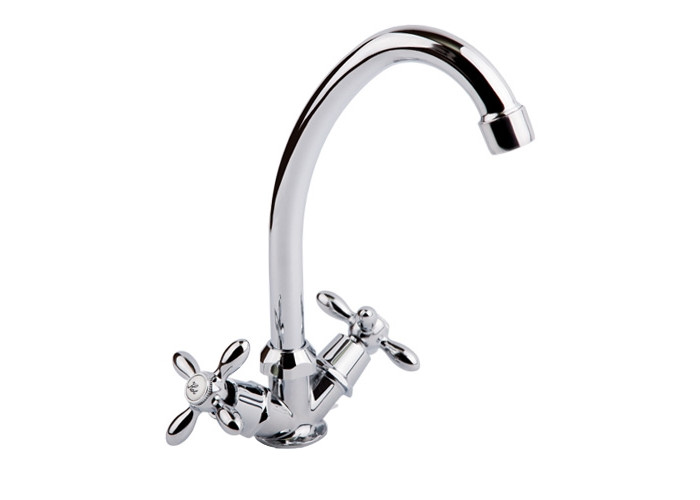 Змішувач для кухні SW Villa 718F-06 виготовлений з силуміну. Завдяки глянсовому хромованому покриттю має оригінальний зовнішній вигляд. Виконаний в класичному стилі, з вентильними ручками для перемикання потоку холодної та гарячої води. Такий змішувач не тільки зручний і практичний, а й ідеально доповнить інтер‘єр кухні.