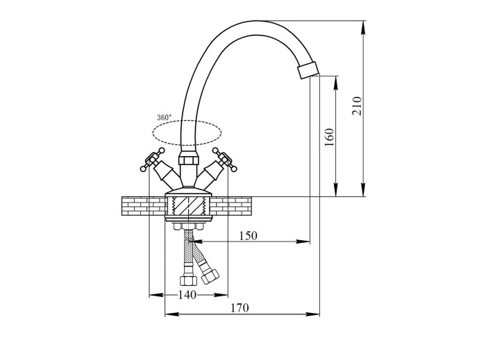 Змішувач, гнучкий підвід, кріпильні деталі.