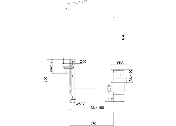 Смеситель, гибкая подводка, донный клапан, крепежи.
