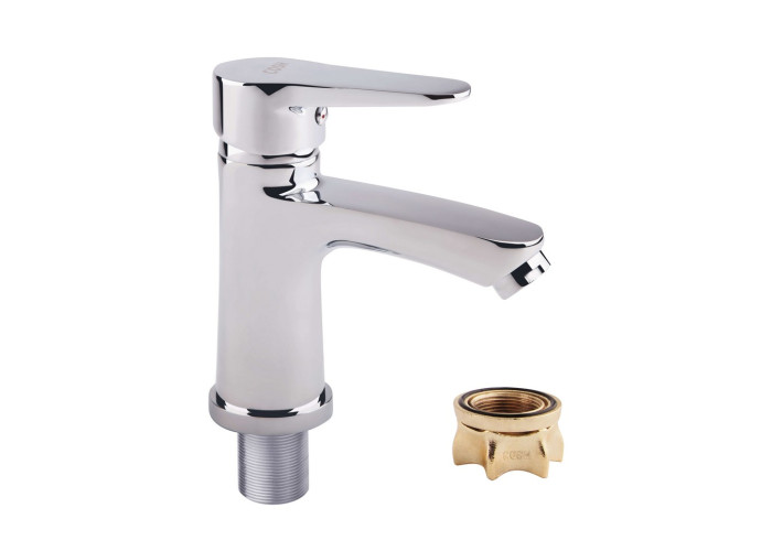 Смеситель для раковины GF (CRM)S-01-001F изготовлен из силумина. Глянцевая хромированная поверхность придает смесителю оригинальный внешний вид. Интенсивность водного потока и температура регулируются с помощью перемещения рычага. Подключение воды происходит через гибкие шланги с диаметром подключения 1/2", которые входят в комплект поставки.