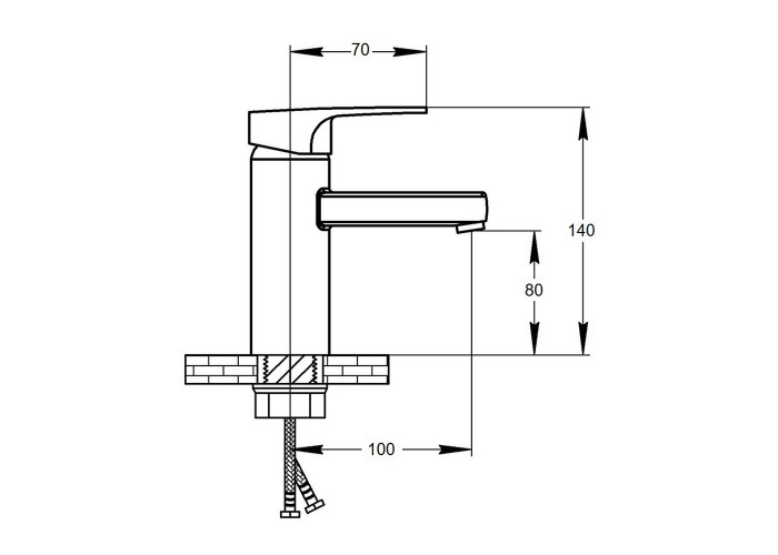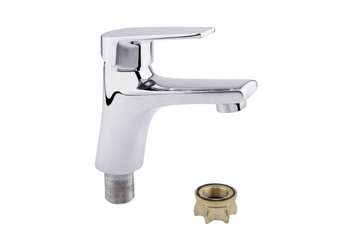 Смеситель для раковины GF (CRM)S-08-001F изготовлен из силумина. Глянцевая хромированная поверхность придает смесителю оригинальный внешний вид. Интенсивность водного потока и температура регулируются с помощью перемещения рычага. Подключение воды происходит через гибкие шланги с диаметром подключения 1/2", которые входят в комплект поставки.