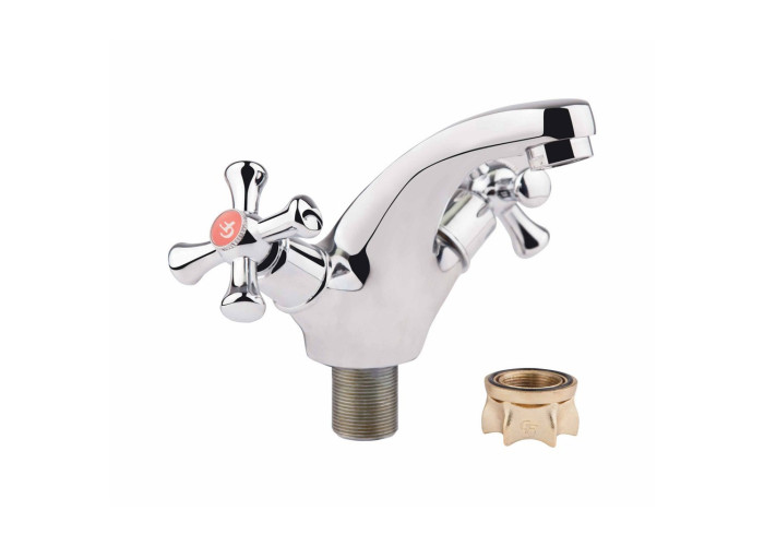 Смеситель для раковины GF (CRM)S-21-161F изготовлен из силумина. Глянцевая хромированная поверхность придает смесителю оригинальный внешний вид. Интенсивность водного потока и температура регулируются с помощью двух вентилей. Подключение воды происходит через гибкие шланги с диаметром подключения 1/2", которые входят в комплект поставки.