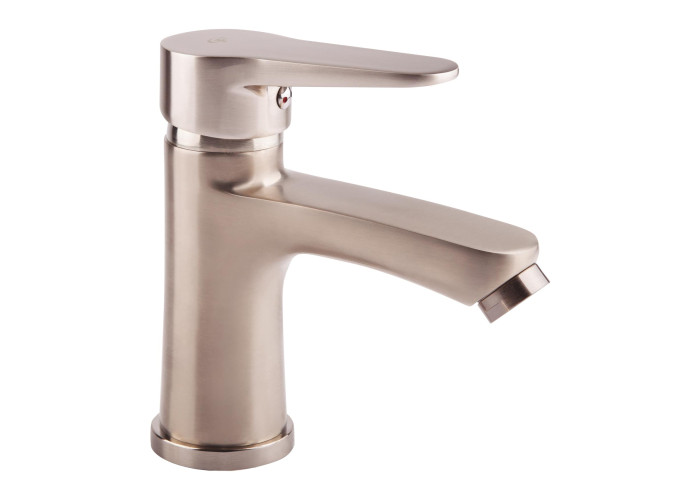 Змішувач для раковини GF (NKS)S-01-001F виготовлений з силуміну. Нікельована брашована поверхня надає змішувачу оригінального зовнішнішнього вигляду. Інтенсивність водного потоку та температура регулюються за допомогою переміщення важеля. Підключення води відбувається через гнучкі шланги з діаметром підмикання 1/2", які є в комплекті.
