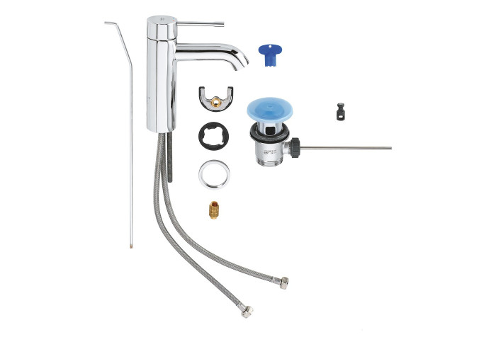 Смеситель для раковины Grohe Essence 23589001 изготовлен из высококачественной пищевой латуни, которая не подвержена коррозии, устойчива к ударам и появлению трещин. Глянцевое хромированное покрытие не только повышает долговечность смесителя, но и придает ему привлекательности. Смеситель имеет однорычажное управление, с помощью которого можно отрегулировать температуру и напор холодной и горячей воды. Подключение воды происходит через гибкие шланги с диаметром подключения 3/8".