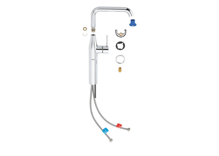 Змішувач для раковини Grohe Essence 32901001 XL-Size виготовлений з високоякісної харчової латуні, яка стійка до впливу корозії, ударів і тріщин. Глянсове хромоване покриття не тільки підвищує довговічність змішувача, а й надає йому привабливості. Змішувач має одноважільне управління, за допомогою якого можна відрегулювати температуру і напір холодної та гарячої води. Підключення води відбувається через гнучкі шланги з діаметром підмикання 3/8". Виконано в сучасному дизайні.