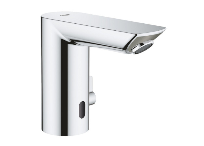 Смеситель для раковины Grohe EX BauCosmopolitan E 36453000 бесконтактный, 220 с инфракрасным датчиком. Обратный клапан. Фильтры улавливают грязь. С встроенным электромагнитным клапаном. Система быстрого монтажа 7 предустановленных режимов: автоматический смыв, термическая дезинфекция, моющее режим.