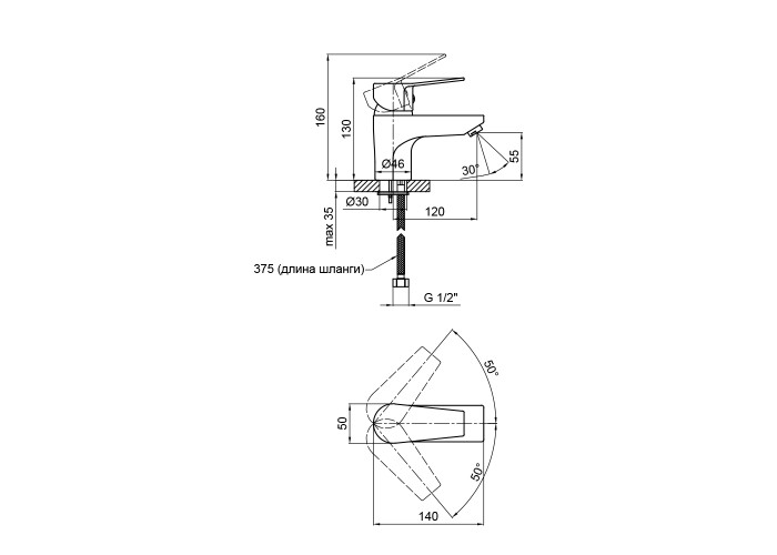 Смеситель, гибкая подводка, крепежи.