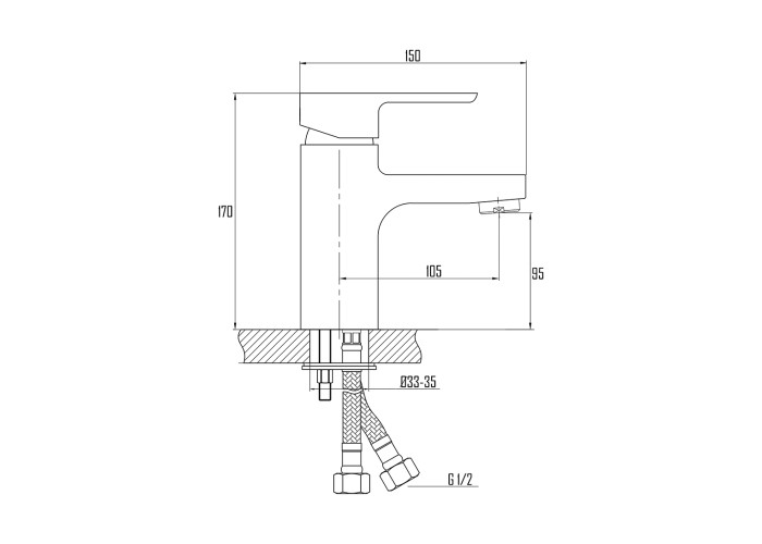 Змішувач, гнучкий підвід, кріпильні деталі.