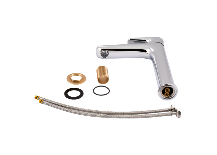 Смеситель, гибкая подводка, крепежи.