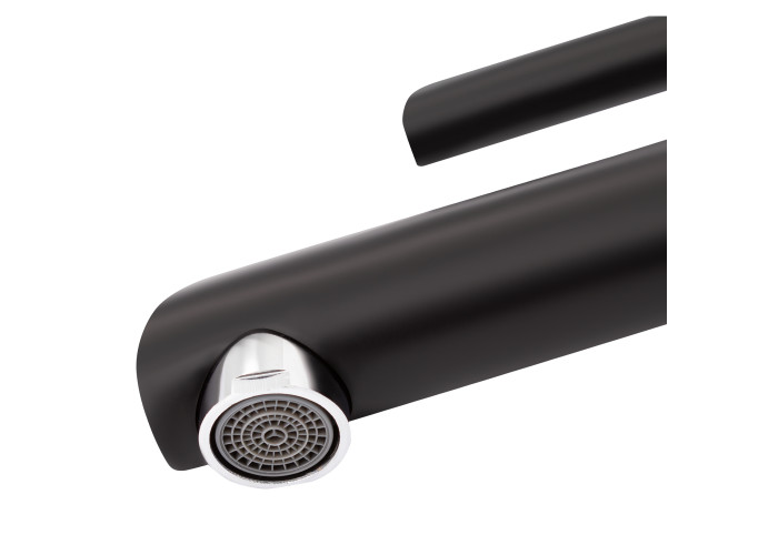 Смеситель для раковины Qtap Grand BCR 001F изготовлен из высококачественной пищевой латуни, которая не подвержена коррозии, устойчива к ударам и появлению трещин. Матовое черное покрытие не только повышает долговечность смесителя, но и придает ему оригинальный внешний вид. Интенсивность водного потока и температура регулируются с помощью перемещения рычага. Подключение воды происходит через гибкие шланги с диаметром подключения 1/2".