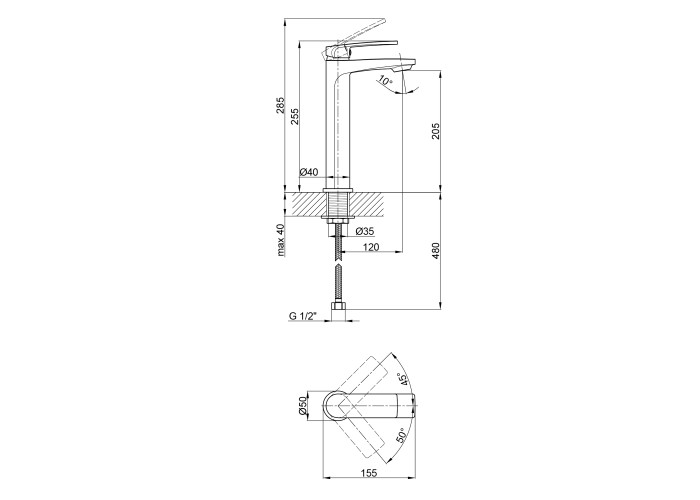 Змішувач, гнучка підводка, ключ для аератора, кріплення.
