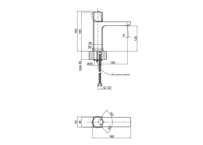 Смеситель, гибкая подводка, крепеж.