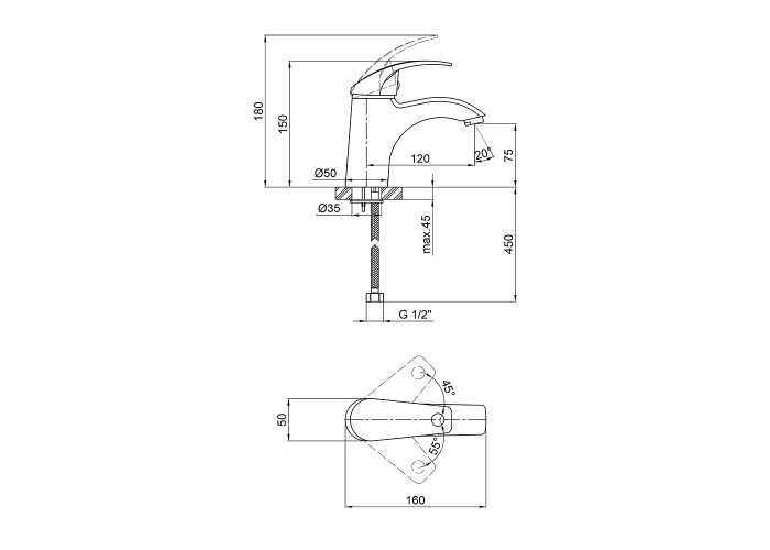 Смеситель для раковины Qtap Mars СRM 001 изготовлен из высококачественной пищевой латуни, которая не подвержена коррозии, устойчива к ударам и появлению трещин. Глянцевое хромированное покрытие не только повышает долговечность смесителя, но и придает ему оригинальный внешний вид. Интенсивность водного потока и температура регулируются с помощью перемещения рычага. Подключение воды происходит через гибкие шланги с диаметром подключения 1/2". Выполнен в современном стиле.