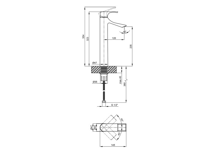 Змішувач, гнучкий підвід, кріпильні деталі.