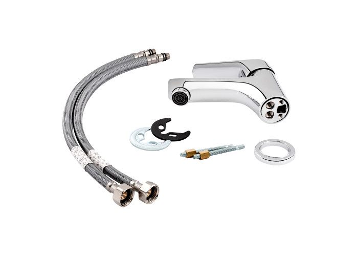 Смеситель для раковины Qtap Ortiz CRM 001 изготовлен из высококачественной пищевой латуни, которая не подвержена коррозии, устойчива к ударам и появлению трещин. Глянцевое хромированное покрытие не только повышает долговечность смесителя, но и придает ему оригинальный внешний вид. Интенсивность водного потока и температура регулируются с помощью перемещения рычага. Подключение воды происходит через гибкие шланги с диаметром подключения 1/2". Смеситель выполнен в современном стиле.