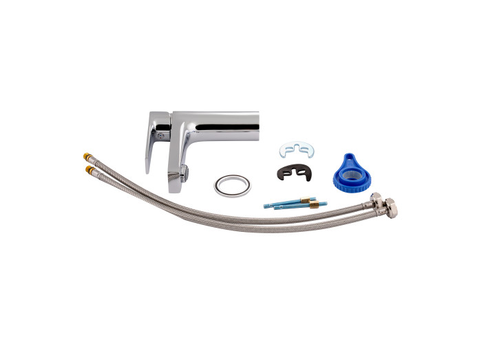Смеситель, гибкая подводка, крепеж.