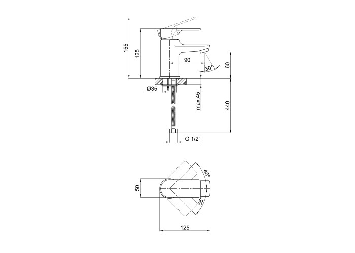 Змішувач, гнучкий підвід, кріпильні деталі.