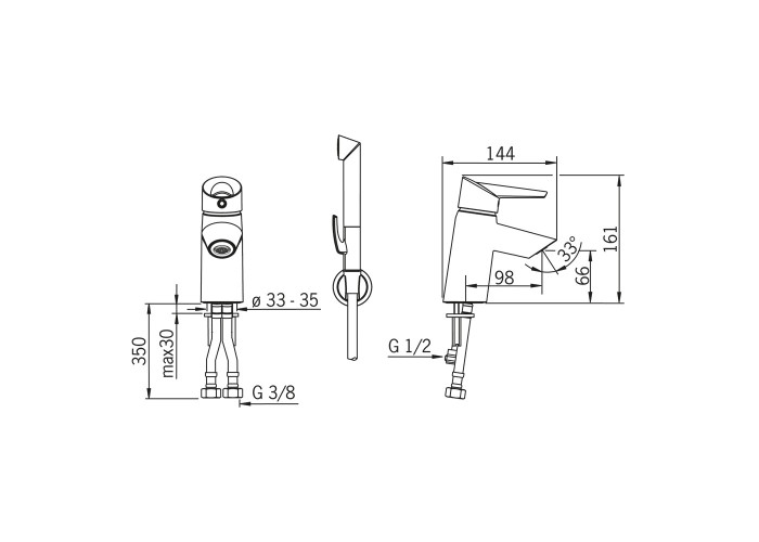 Змішувач для раковини Oras Optima 2712F з лійкою для біде виготовлений з латуні. Глянцева хромована поверхня надає змішувачу оригінального зовнішнього вигляду. Інтенсивність водного потоку та температура регулюються за допомогою переміщення важеля. Підключення води відбувається через гнучкі шланги з діаметром підмикання 1/2", які є в комплекті. Змішувач комплектується з одноструменевою лійкою для біде, душовим шлангом довжиною 150 см та настінним кронштейном.