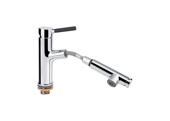 Смеситель выдвижной для раковины Qtap Inspai CRM 011F изготовлен из высококачественной пищевой латуни, которая не подвержена коррозии, устойчива к ударам и появлению трещин. Глянцевое хромированное покрытие не только повышает долговечность смесителя, но и придает ему оригинальный внешний вид. Интенсивность водного потока и температура регулируются с помощью перемещения рычага. Подключение воды происходит через гибкие шланги с диаметром подключения 1/2".