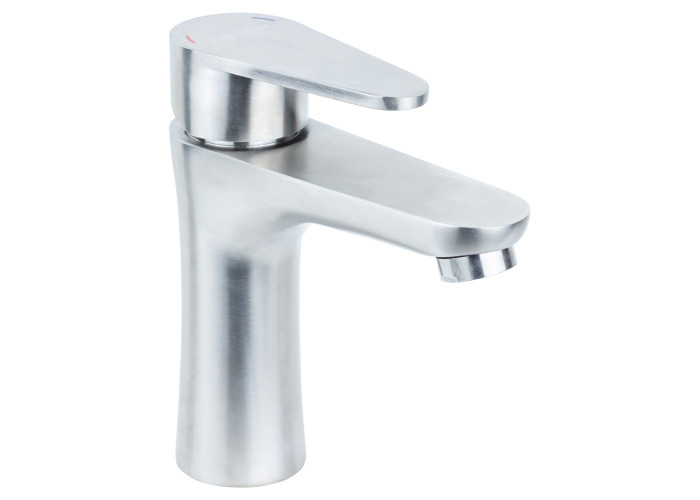 Смеситель HT Ø35 для раковины литой на гайке SS AQUATICA (HT-1A171P). Минимальное давление в системе водоснабжения: 0.5 бар. Максимальное давление в системе водоснабжения: 10 бар. Водородный показатель воды (pH): 6.5-8.5. Общая минерализация воды: не более 1500 г/м³. Только для чистой воды без примесей, содержащих абразивы (песок, глину, известь и т.д.). Смеситель для раковины (модель HT-1A171P) выполнен из нержавеющей стали, имеет монолитный излив. Он является однорычажным. Внутри установлен керамический картридж, благодаря чему переключение воды производится плавно и бесшумно. Сдержанный, но современный дизайн позволяет гармонично вписать смеситель в дизайн любой ванной комнаты или санузла. Данный смеситель для умывальника выполняет три основные функции: Придает презентабельность помещению; Легко регулирует температуру струи; Рассеивает поток подаваемой воды, снижая ее расход. Изделие укомплектовано гибким подводом (2 шт.). Способ монтажа – крепление к поверхности с помощью гайки (втулки). Гарантия на кран от ТМ Aquatica – 3 года.