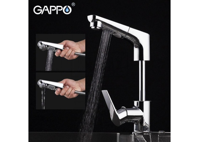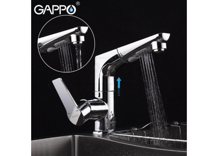 Смеситель GAPPO G1299 отличается функциональностью и практичностью, стильным дизайном и долгим сроком службы. Особенностью модели являются ее конструктивные особенности, а именно регулируемый по высоте гусак, который к тому же и выдвижной. Нижняя часть гусака оборудована специальной лейкой, которая при нажатии на кнопку выдает поток воды через форсунки. Она полностью повторяет эффект обычной душевой, но имеет меньшие габариты.