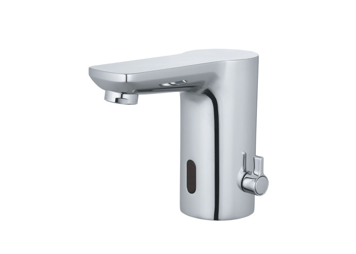 Смеситель ORTA сенсорный для раковины литой на шпильке CORSO (EE-8A116C) (9670000) сенсорный датчик. Покрытие хром. Аэратор Neoperl. Крепления на шпильке из нержавеющей стали. Гибкая подводка из нержавеющей стали 1/2"×M10×350 мм - 2 шт. Вес 2000 г. 200 часов в NSS (тест в нейтрально-солевой камере). Элемент питания (батарейки). С рычагом регулирования температуры. Изготовлен из латуни.