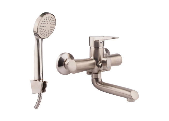Смеситель для ванны GF (NKS)/S-02-005BN выполнен из качественного материала с держателем ручного душа, душевым шлангом и лейкой. Для включения потока воды предусмотрено удобный рычаг с отверстием и нанесенной маркировкой Х+Г воды, для переключения на душ - поворотный дивертор в виде рычага. Настенный монтаж осуществляется с помощью крепежных деталей, которые входят в комплект. Круглые розетки скроют все погрешности установки.