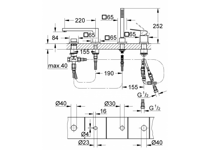 GROHE SilkMove - плавность хода рычага. GROHE StarLight - хромированное покрытие. GROHE DreamSpray - оптимальное распределение воды по каждой душевой форсунке. GROHE CoolTouch - предотвращение ожогов о поверхность изделий. GROHE EcoJoy - водосберегающая технология. GROHE SpeedClean - предотвращение образования известковых отложений.