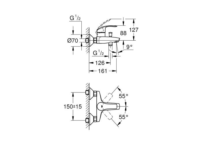 Смеситель для ванны Grohe Eurosmart 33300002 выполнен из латуни и имеет хромированную сияющую поверхность, которая устойчива к образованию коррозии, загрязнениям и истиранию. Вышеперечисленные характеристики изделия гарантируют его долговечность. Для включения подачи воды смеситель оснащен удобным рычагом с нанесенной маркировкой Х+Г воды, а для переключения на душ - нажимным дивертором и выходом для подключения душевого шланга. Круглые розетки скроют все погрешности настенного монтажа.