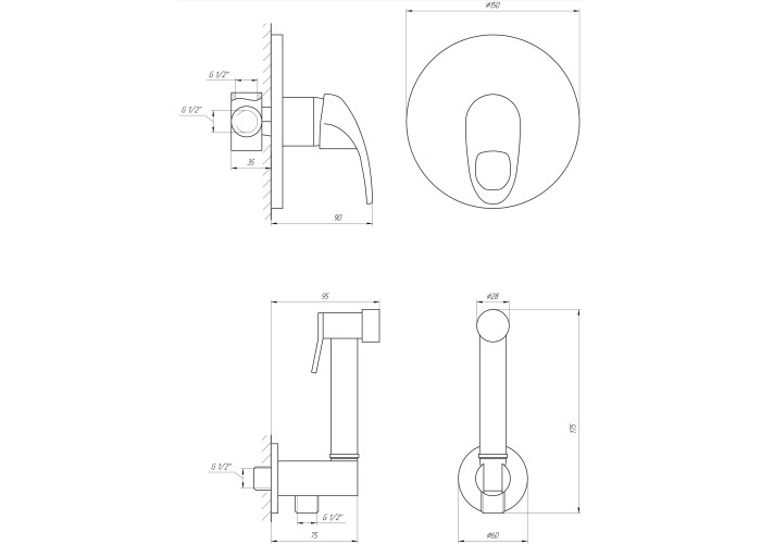 Змішувач для біде вбудований Globus Lux SENA GS-0110, гігієнічний