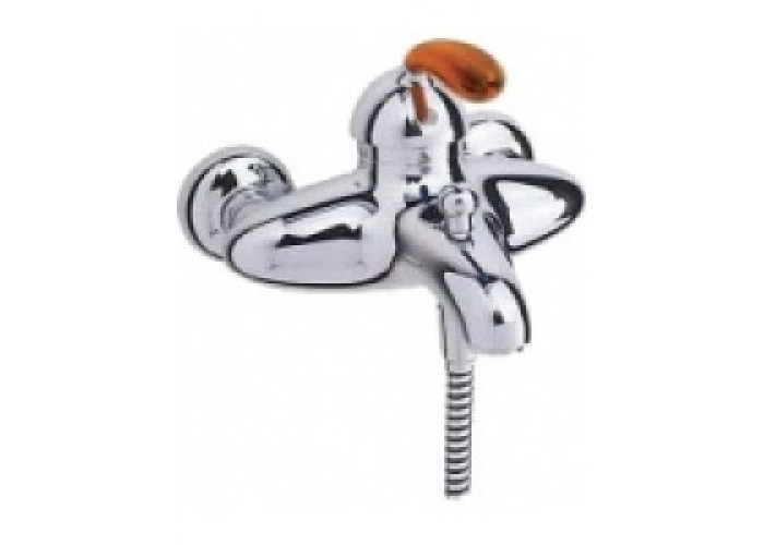 Смеситель однорычажный для ванны, горизонтальный монтаж, жесткая подводка. Тип излива - направленный, расход воды: 22 л/мин при 300 кПа, кол-во отверстий для крепления - 2, особенности - ограничитель температуры. Штихмас (монтажный размер) 150±16 мм. S-образные эксцентрики. Автоматический переключатель ванна/душ. Присоединительная резьба душевого шланга ½. Керамический картридж. Покрытие - хром, янтарь.