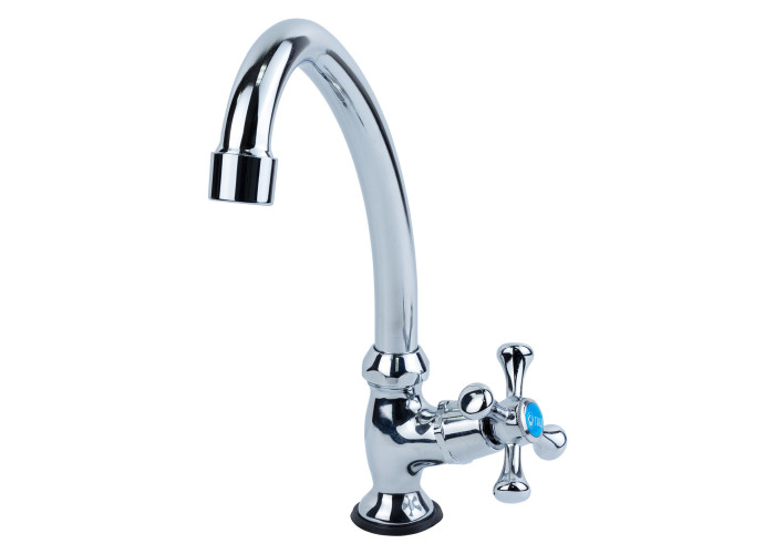 Змішувач VN 1/2" монокран на гайці TAU (VN-1G160C). Продаж кратно 4 шт. Мінімальний тиск в системі водопостачання: 0.5 бар. Максимальний тиск в системі водопостачання: 10 бар. Водневий показник води (pH): 6.5-8.5. Загальна мінералізація води: не більше 1500 г/м³. Тільки для чистої води без домішок, що містять абразиви (пісок, глину, вапно тощо). Змішувач для раковини VN-1G160C має конфігурацію монокрана з подачею тільки холодної води. Він підходить для заміських будинків, санвузлів і умивальників у закладах громадського харчування. Завдяки плавним формам корпусу і хромонікелевому покриттю виріб має естетичний зовнішній вигляд і захищений від корозії. Змішувач для умивальника має такі особливості: зручність використання завдяки J-подібному поворотному виливу; плавне регулювання напору і аерація потоку води; зносостійкість кран-букси; простий спосіб монтажу; доступна ціна. Кріпиться змішувач для раковини VN-1G160C до поверхні за допомогою гайки. Гарантія на виріб становить 12 місяців.